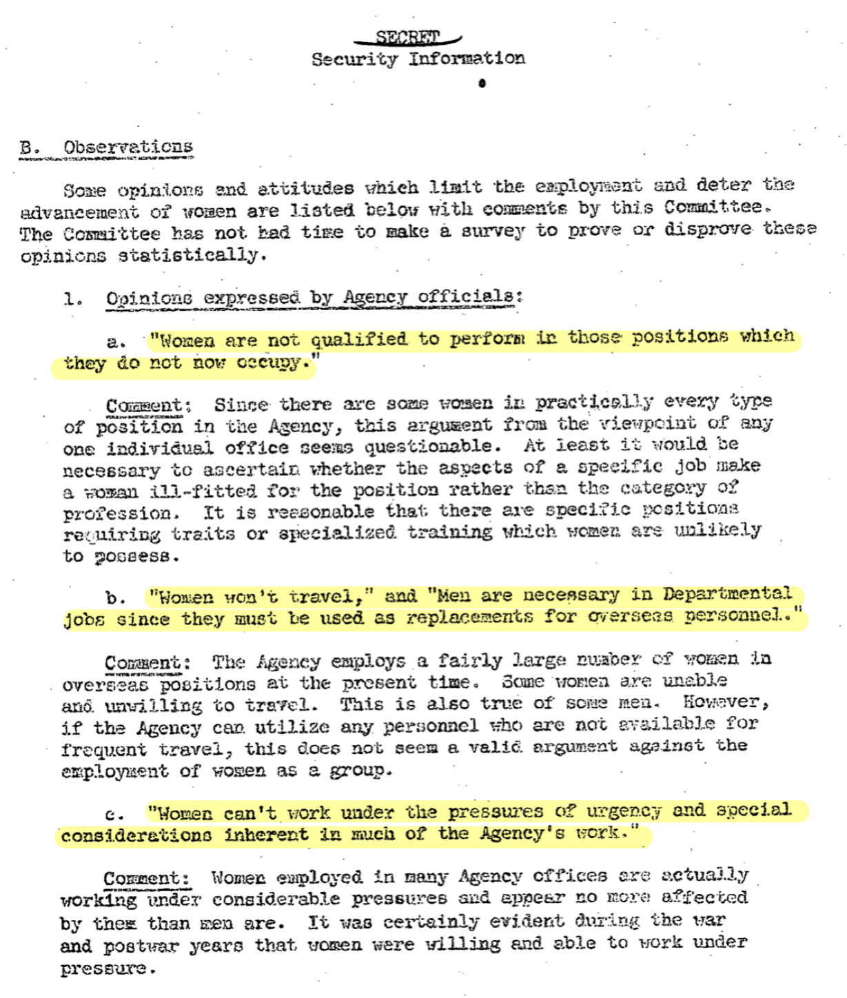 Report of the Committee on Professional Women in the Overt Offices, November 1, 1953. CIA