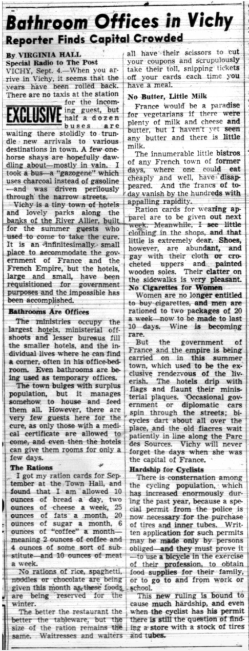 -Virginia Hall in the New York Post, September 4, 1941 (Purnell 87)