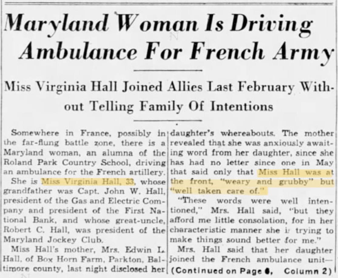-Virginia Hall in the New York Post, June, 1942 (Mitchell 101)