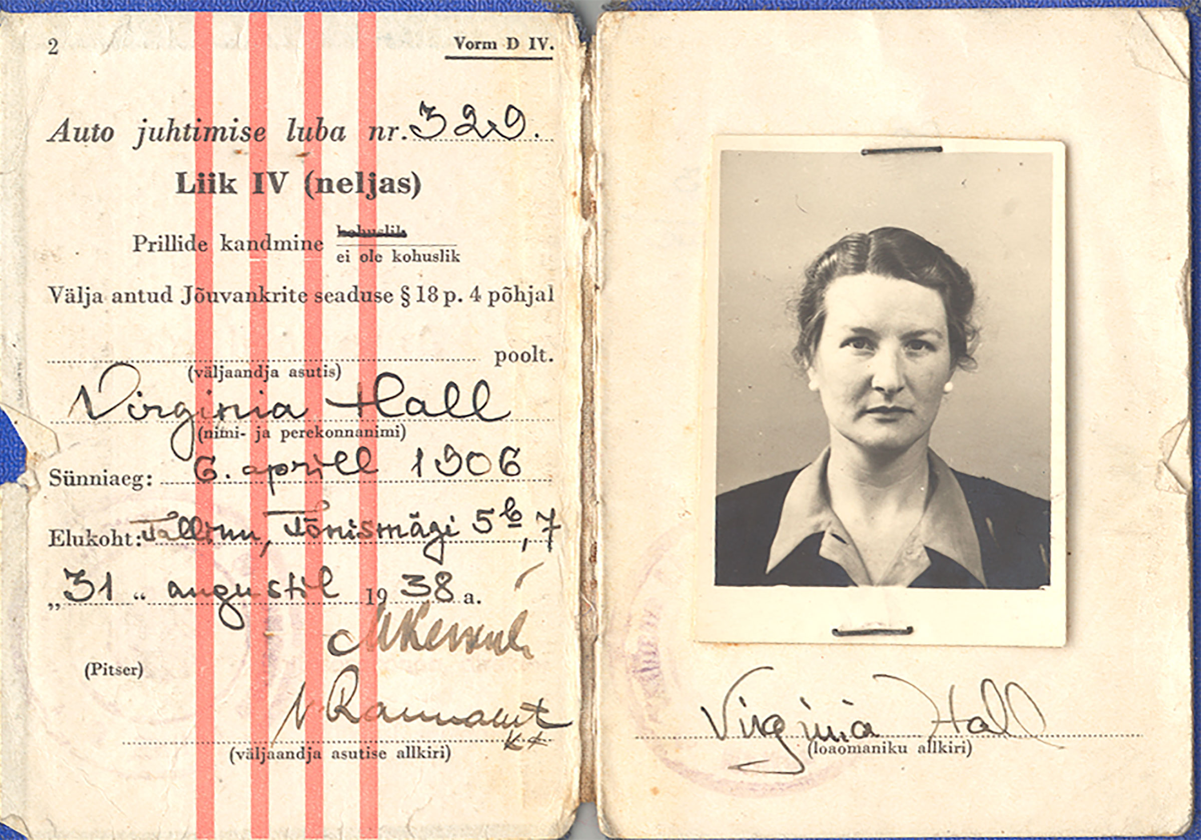 Virginia Hall's Driver Liscense. c. 1931. Time Magazine