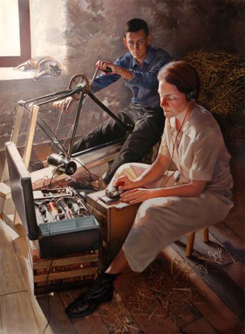 Painting of Virginia Hall transmitting messages from France. Jeff Bass